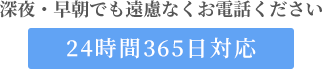 24時間365日深夜・早朝に関わらず、専門のスタッフがいつでも対応致しております。