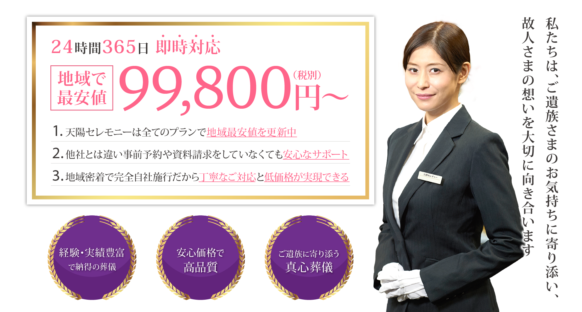全ての葬儀を弊社スタッフが直接取り行います。