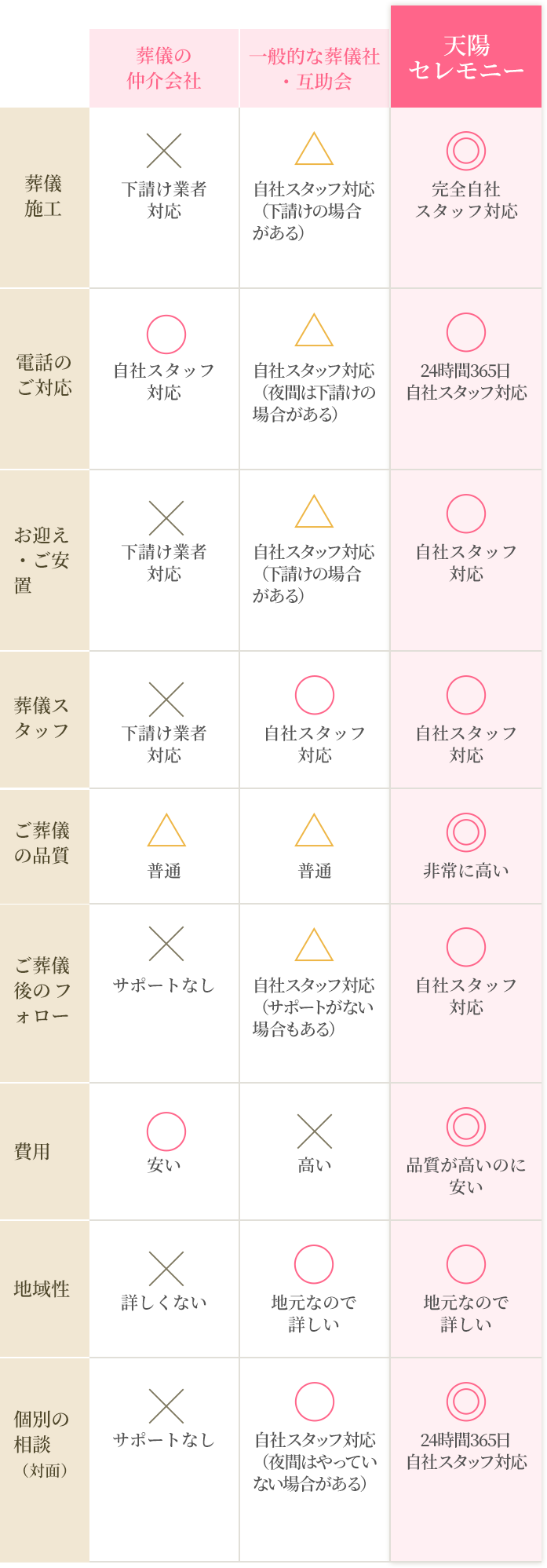 社名の天陽は、故人を「天」に導けるように丁寧に施行し、ご遺族には太「陽」のような温かさと、